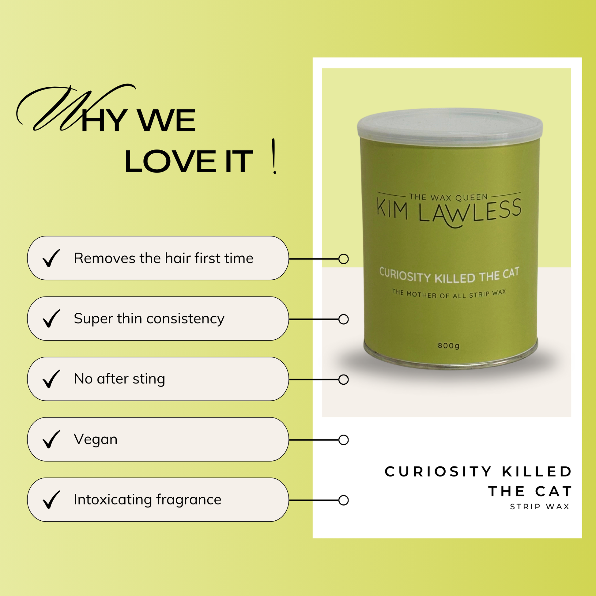 CURIOSITY KILLED THE CAT strip wax has been designed with professional waxers in mind. It applies thinner so you get more waxes out of every tin, and it removes the shortest and toughest of hairs with ease.
